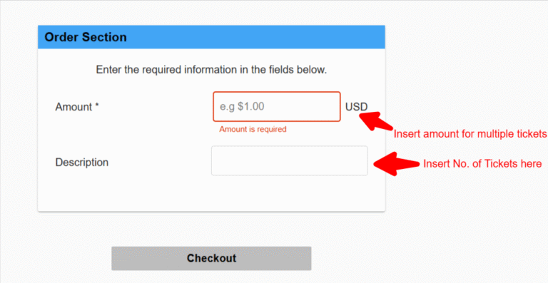 For Example: If you need 5 tickets, In the Amount field, type 750 & In the description field, mention 5 Tickets.